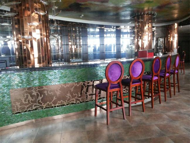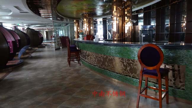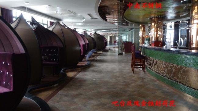 2012年,明鉑爾與荷花廣場流金歲月西餐廳,與北京星亞澤園裝飾工程公司合作。制作玫瑰加荷花蝕刻酒柜,不銹鋼藝術造型。