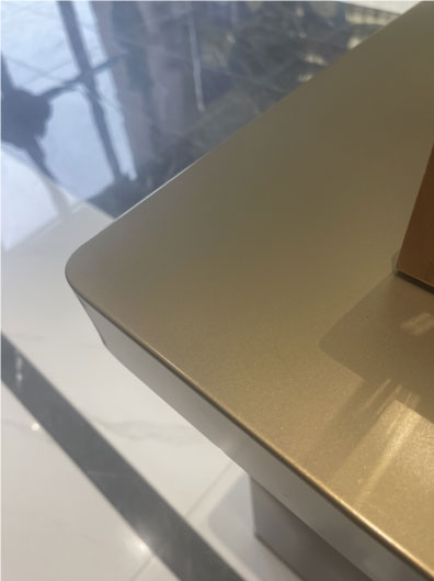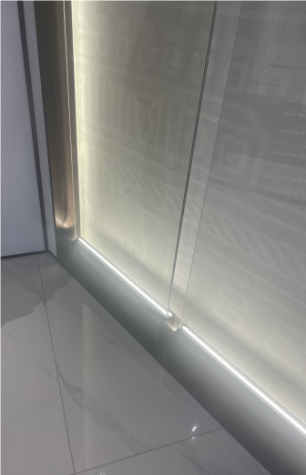 大門(mén)整體使用不銹鋼材質(zhì),八個(gè)不銹鋼字耐磨耐曬耐腐蝕,地拉彈簧門(mén)上放棄使用傳統(tǒng)拉手,改用定制云紋拉手,使得大門(mén)的質(zhì)感更上一層樓。