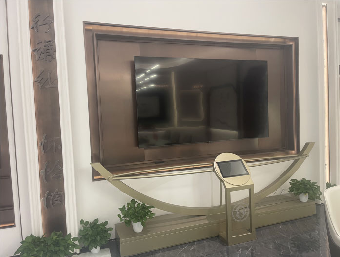 習(xí)酒文化電子展廳的不銹鋼展臺(tái)和不銹鋼背景墻